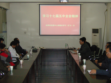 2010年11月15日,所黨委召開(kāi)了中心組理論學(xué)習(xí)(擴(kuò)大)會(huì),會(huì)議邀請(qǐng)省委黨校馬邊防教授結(jié)合十七屆五中全會(huì)精神做關(guān)于十二五宏觀經(jīng)濟(jì)形勢(shì)報(bào)告。所領(lǐng)導(dǎo)班子成員、中層干部、支部書記及部分管理部門人員40余人參加了會(huì)議。黨委書記楊玉亭主持會(huì)議。