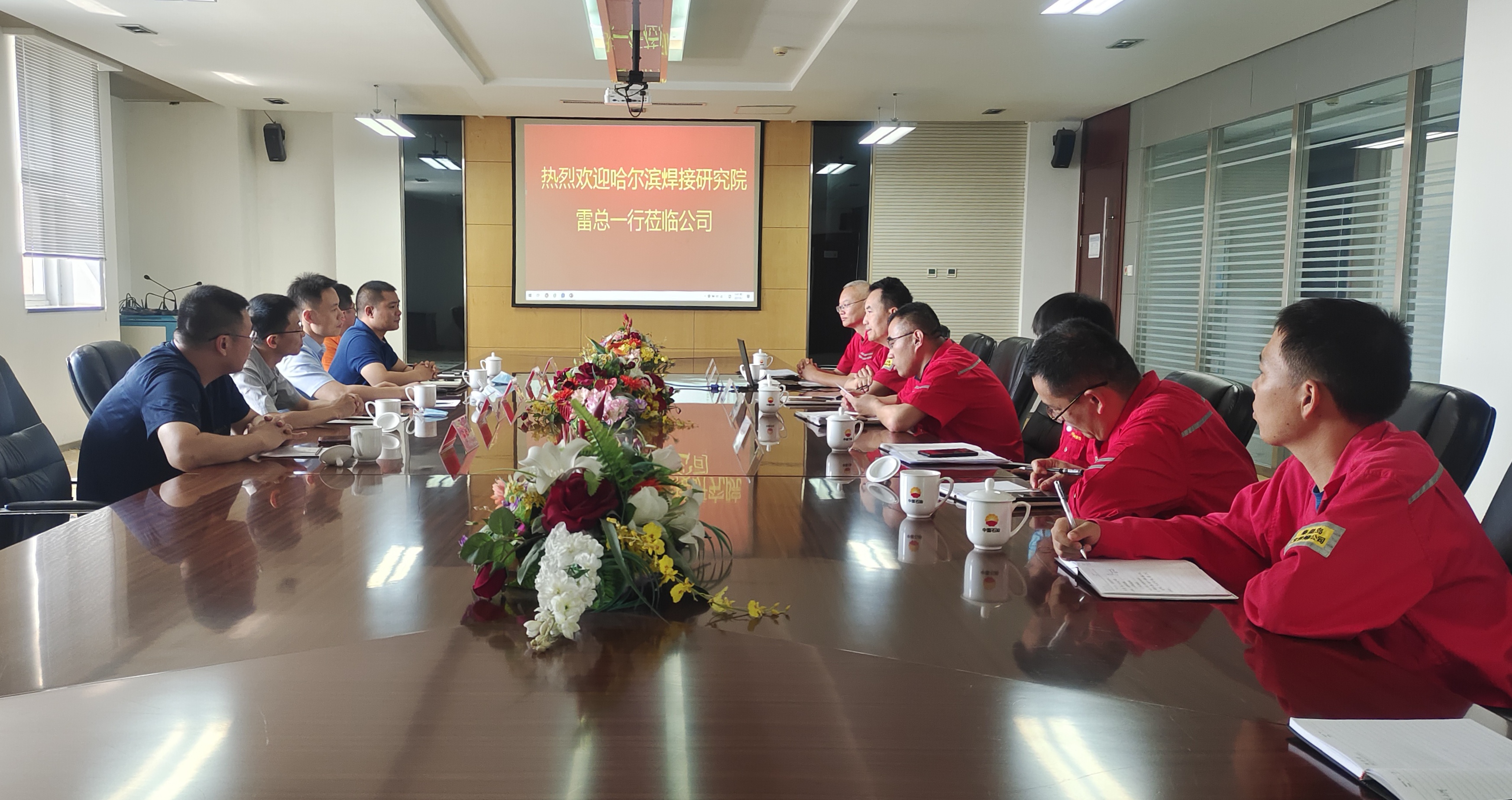 9月1日,哈焊院副總經理雷振一行五人赴中油寶世順(秦皇島)鋼管有限公司考察交流,寶世順公司執(zhí)行董事、總經理?;⑶笨偨浝韽埵罎鱿涣骰顒?。