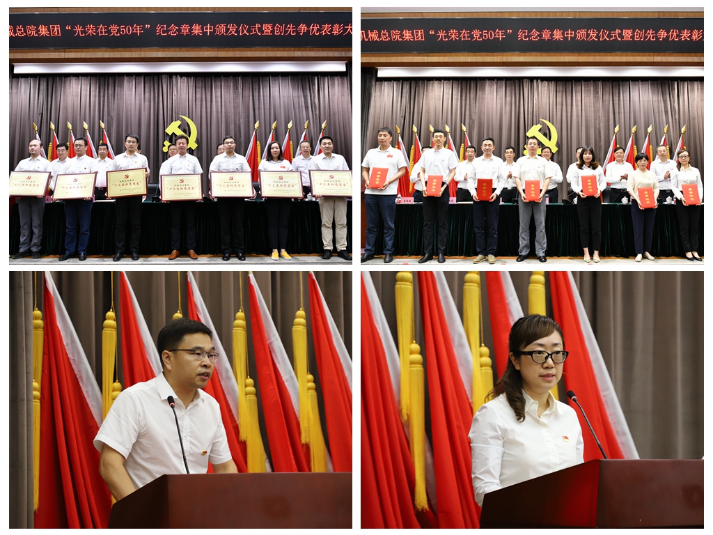 6月29日,機(jī)械總院集團(tuán)在京召開“光榮在黨50年”紀(jì)念章集中頒發(fā)儀式暨創(chuàng)先爭優(yōu)表彰大會(huì),深入學(xué)習(xí)貫徹習(xí)近平總書記重要講話和指示批示精神,慶祝中國共產(chǎn)黨成立100周年,表彰先進(jìn)、樹立典型,激勵(lì)引導(dǎo)各級(jí)黨組織和廣大黨員、干部員工開拓進(jìn)取、扎實(shí)工作、創(chuàng)先爭優(yōu),以高質(zhì)量黨建引領(lǐng)集團(tuán)高質(zhì)量發(fā)展,助力集團(tuán)“十四五”開好局、起好步。集團(tuán)黨委書記、董事長王德成出席會(huì)議并講話,黨委副書記、總經(jīng)理王西峰主持會(huì)議,黨委副書記李玉鑫宣讀表彰決定,黨史學(xué)習(xí)教育中央企業(yè)第八指導(dǎo)組一行出席會(huì)議。