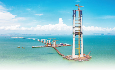 伶仃洋大橋東索塔施工現(xiàn)場(chǎng)。